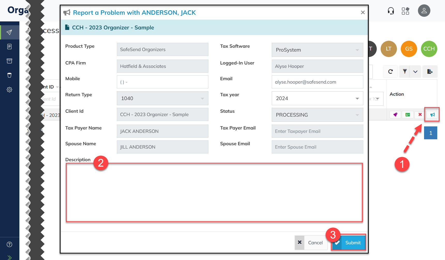 Use this feature to report an issue to the SafeSend Support team.