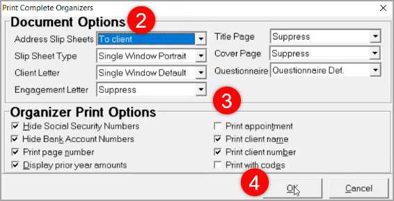 This article contains information about the required print settings to use for Lacerte® organizers and engagement letters. For information on how to prepare batch organizers, see Uploading Batch Organizers.
